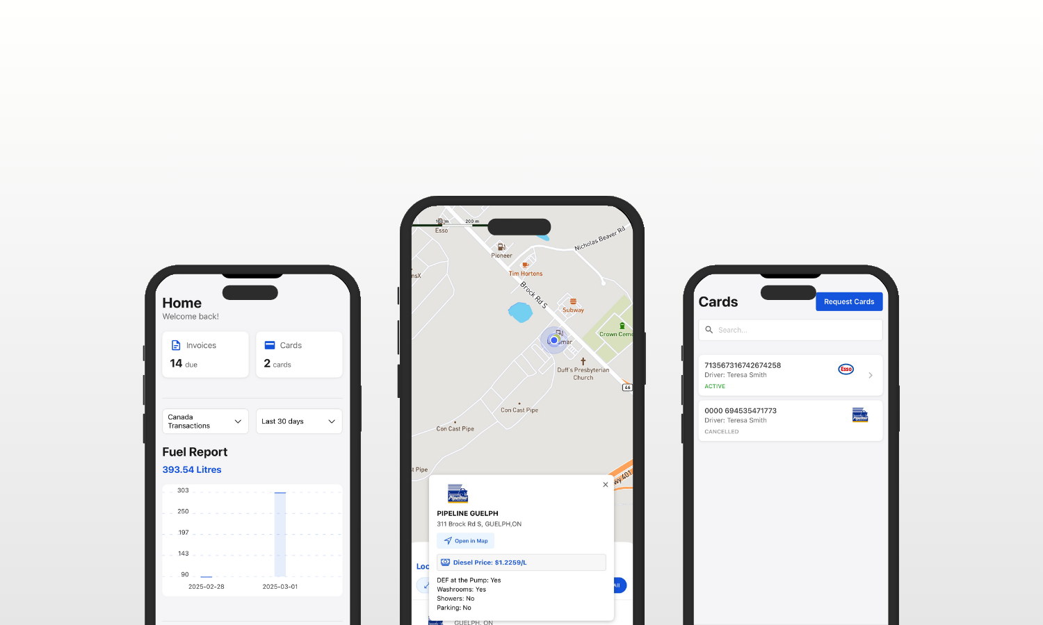 - Location Services: Easily locate nearby cardlock stations for fueling and service needs.